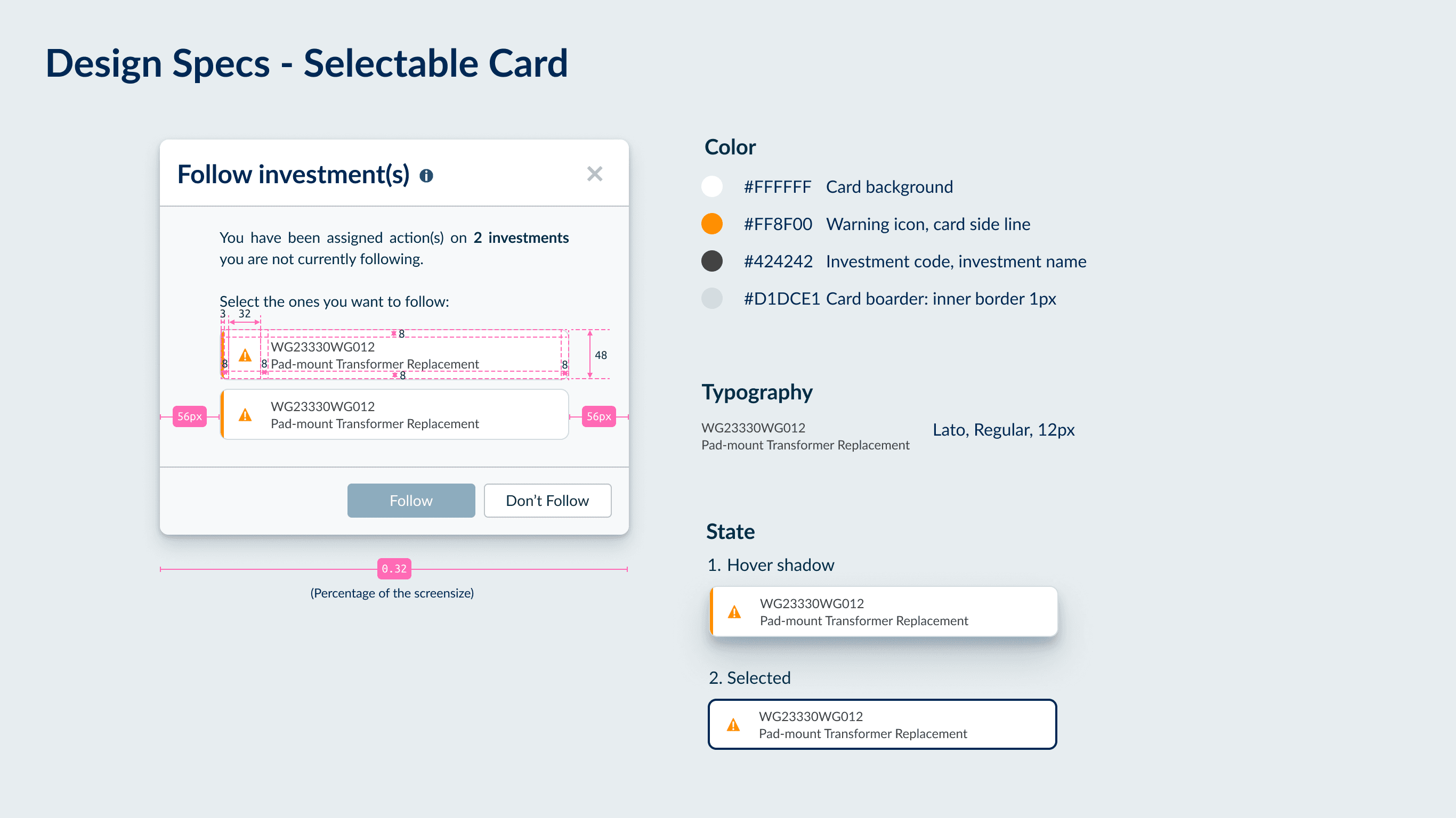 After getting approval to work on investment creation edit experience redesign, I started to map out the existing user flow and redesign the whole experience from strawman ideas into low-fidelity mockups for usability evaluation. And eventually, I created high-fidelity prototypes with detailed design spes for design handoffs.